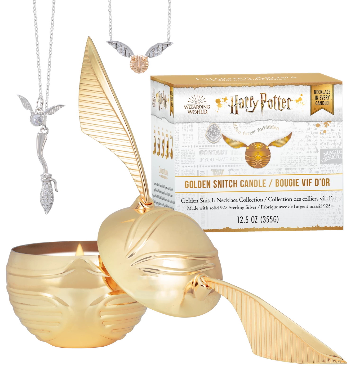 Find a Harry Potter Golden Snitch necklace inside this jewel candle! One size fits all.
