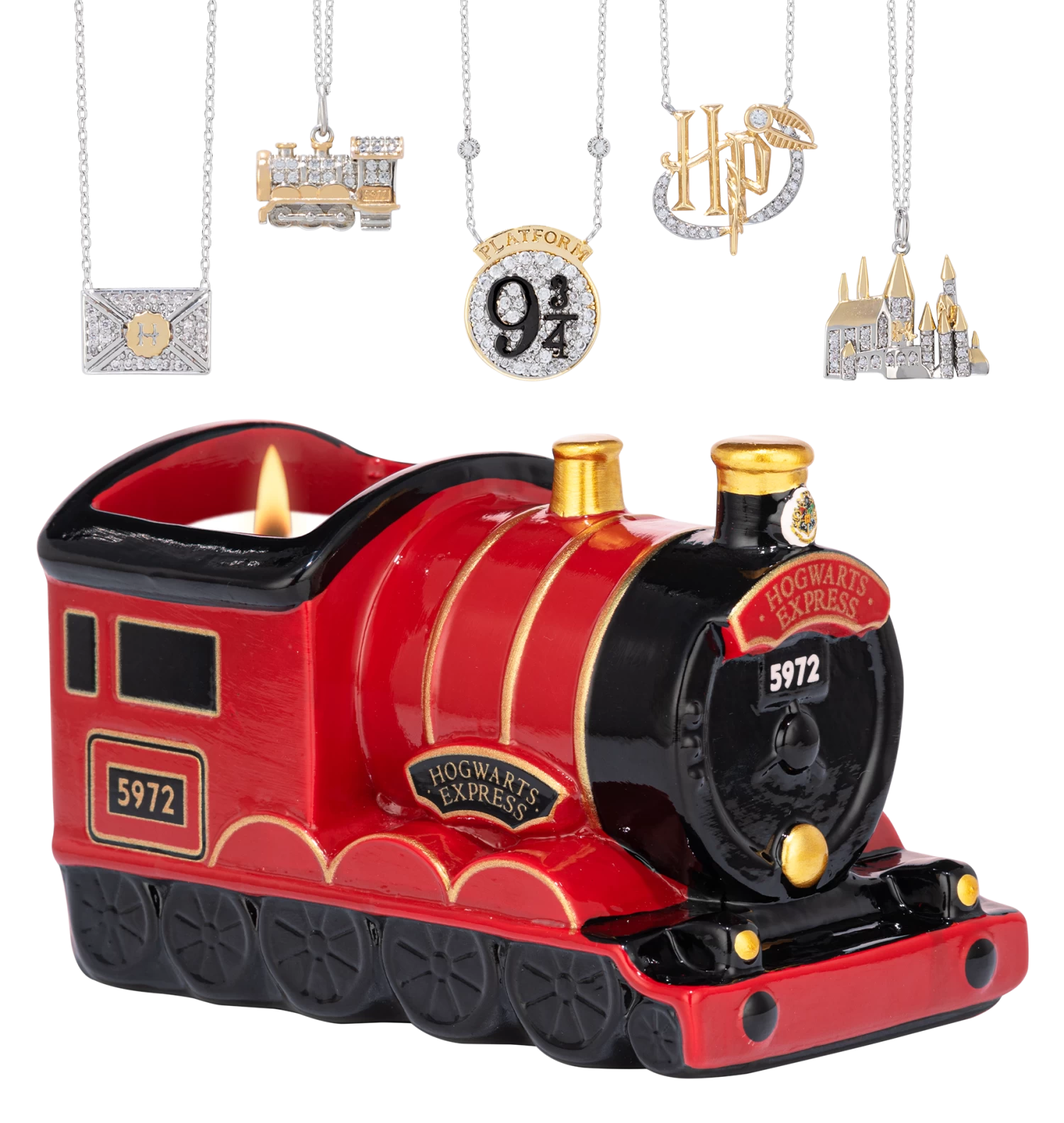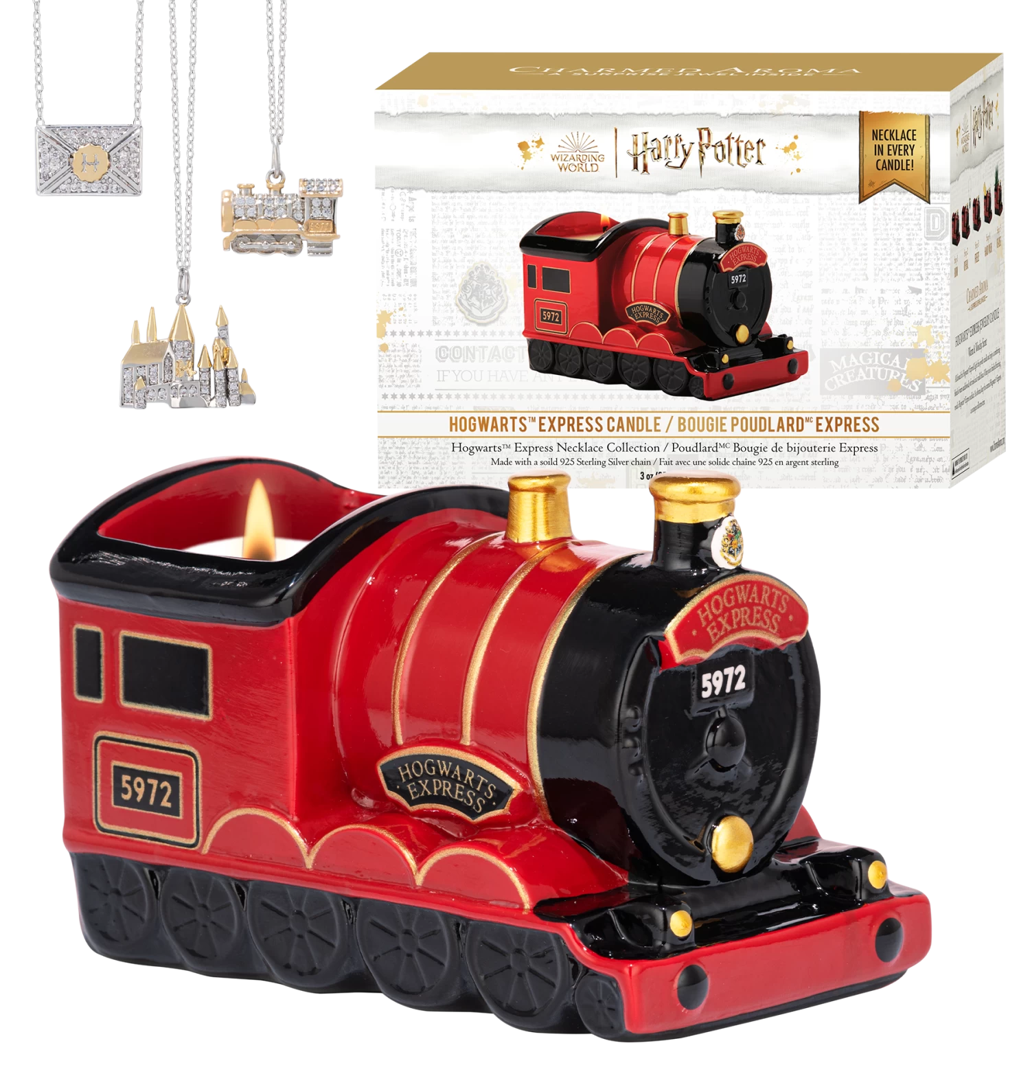 Find a Harry Potter Hogwarts Express necklace inside this jewel candle. One size fits all.