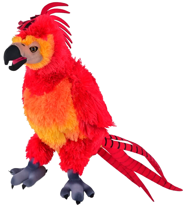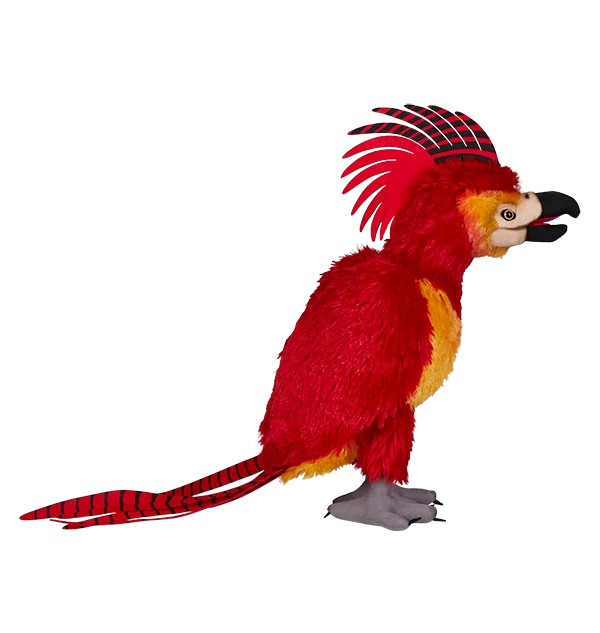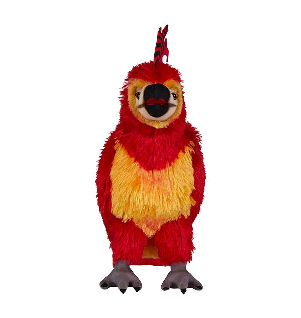 The phoenix soft toy measures approximately 41cm tall and has a black beak and black acrylic eyes. The Fawkes Phoenix plush is complete with red tail feathers made from felt, which helped to form the core of both Harry and Voldemort’s magical wands.