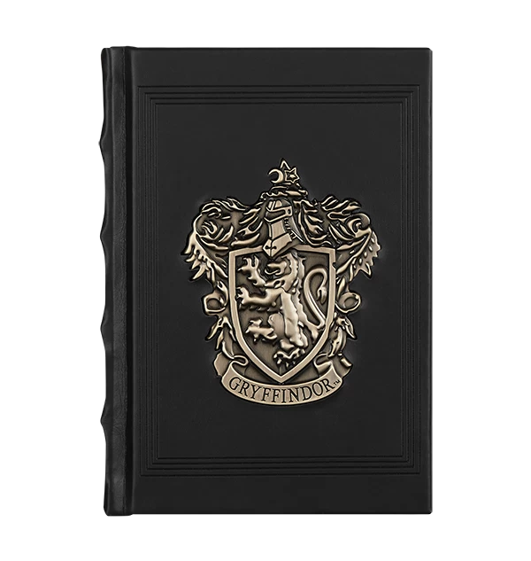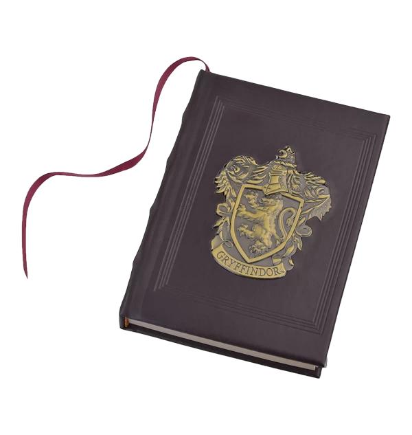 The perfect book for taking classroom notes is this premium Gryffindor metal crest journal. The journal features an antiqued gold metal Gryffindor House crest in a brass effect, on a brown faux-leather cover.