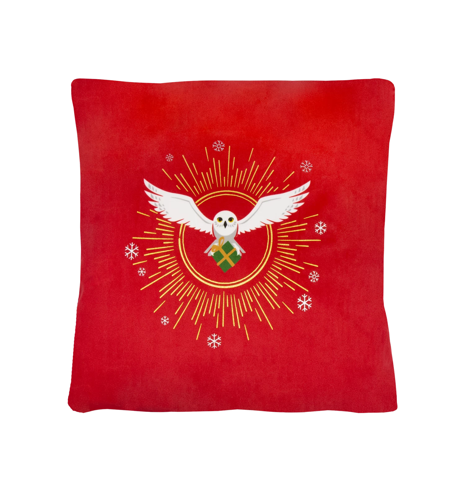 Luxurious and plush to the touch, this Harry Potter cushion cover invites you to indulge in cosy, festive comforts. Fashioned from 100% soft pile polyester velour, its front features a heartwarming scene from the Philosopher’s Stone where Harry sits next to the Christmas tree in the Great Hall of Hogwarts Castle. The bright red contrast back cover boasts a shimmering print of Hedwig carrying a gift, surrounded by a golden ornamental burst with snowflakes. Exquisite satin piping along the edge adds an additional elegant touch.