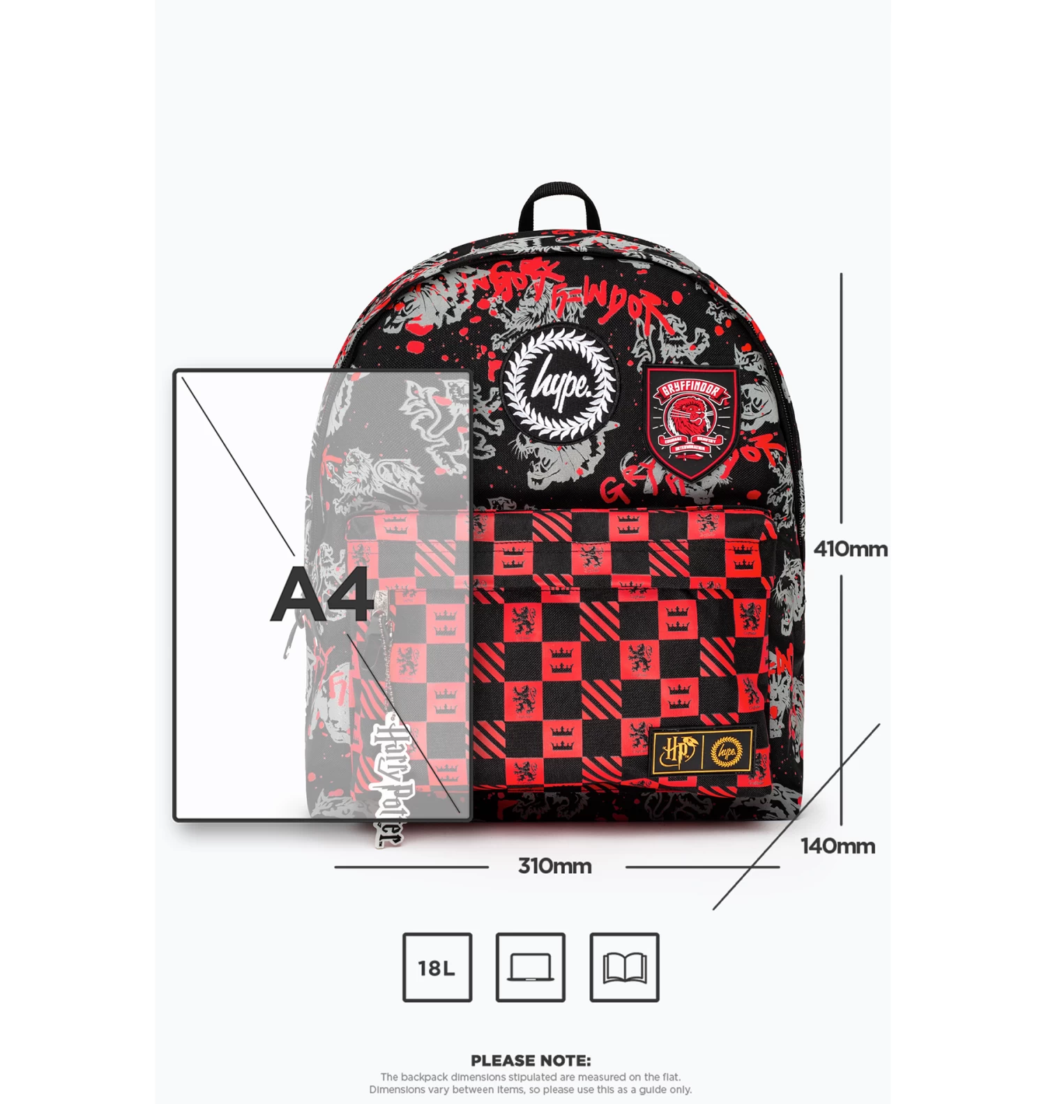 10 points to Gryffindor! The HYPE. X Harry Potter Gryffindor Backpack is made from 100% polyester in our standard backpack shape.