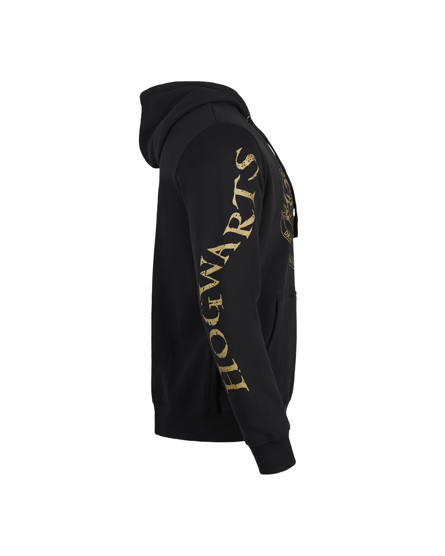 Celebrate the wizarding world with this stylish Hogwarts crest hoodie featuring the iconic Hogwarts crest in a gold, metallic print alongside Hogwarts printed down the right-hand sleeve. It also includes a full tunnel pocket in front to hide away any trinkets, or just to keep hands warm in the cooler months. The hoodie has a fitted hood and two strings which are adjustable for a suitable and comfortable fit.