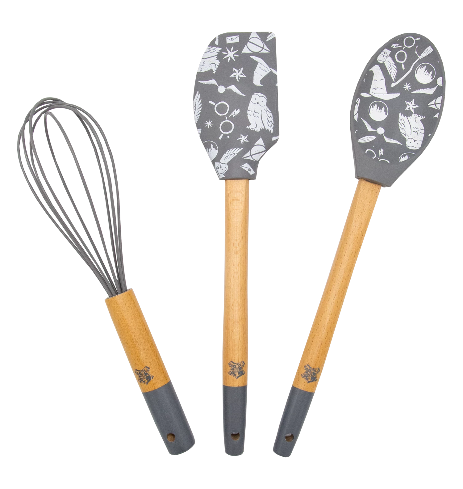 Whip up your favourite magical recipes in true wizarding style with this delightful 3-pack of Hogwarts Kitchen Utensils! Included in this set are a charming spatula, spoon, and whisk, each designed to bring a touch of enchantment to your culinary adventures.