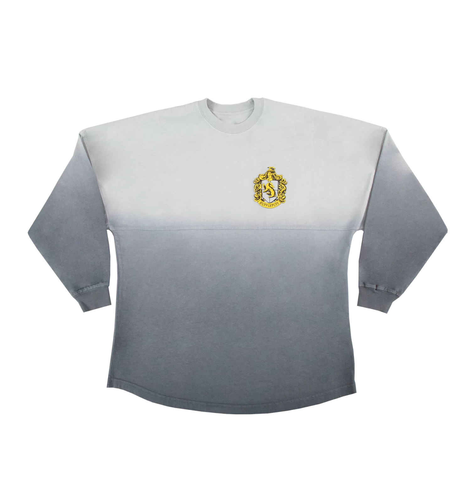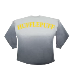 This statement long sleeved Hufflepuff Spirit Jersey features a light grey colour at the shoulders that gradually fades into to a deeper grey at the bottom. The classic style Hufflepuff crest can be seen on the left chest, whilst on the back the house name can be seen. Emblazoned in Spirit Jersey’s famous puff-text, a bright yellow ‘HUFFLEPUFF’ is printed in raised ink across the shoulders, leaving no one in doubt which house you support!