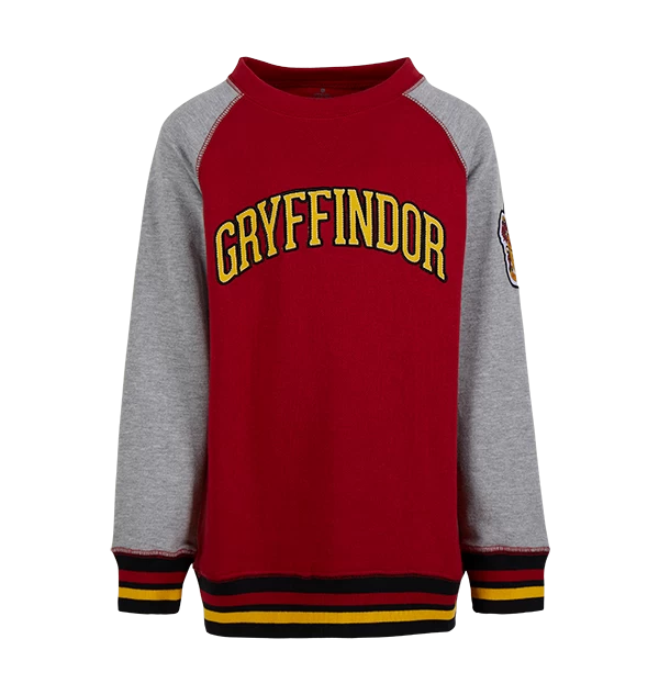 The sweatshirt is complete with grey sleeves and the Gryffindor house logo. For a touch of house pride, you will also find the house name screen-printed across the jumper’s chest in yellow.
