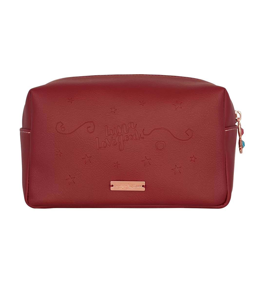 The maroon side has embossed text of Luna Lovegood’s signature, with a rose gold ‘The Harry Potter shop’ tag. The makeup bag is complete with a rose gold ‘Spectrespecs’ zip with blue and pink gems. This gorgeous PU leather makeup bag is perfect to store all your beauty products and can be paired with our whimsical