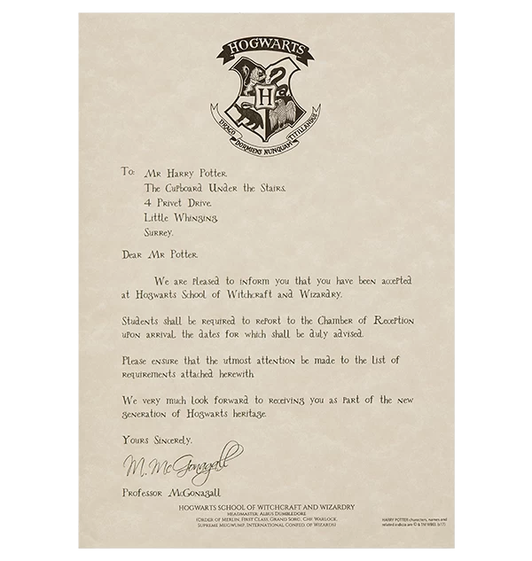You can now receive your very own personalised replica of the Hogwarts Acceptance Letter, complete with an exclusive supplies list.