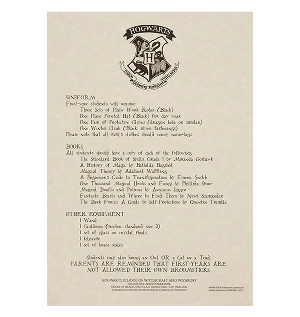 Your Personalised Hogwarts Acceptance Letter contains the below: