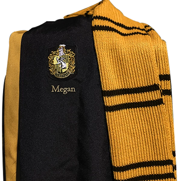Celebrate your Hogwarts house pride with this replica Personalised Hufflepuff robe, as seen in the Harry Potter film series. The Hufflepuff robe features contrasting yellow lining, pockets (there’s even a hidden pocket for your wand!), and embroidered Hufflepuff crest.