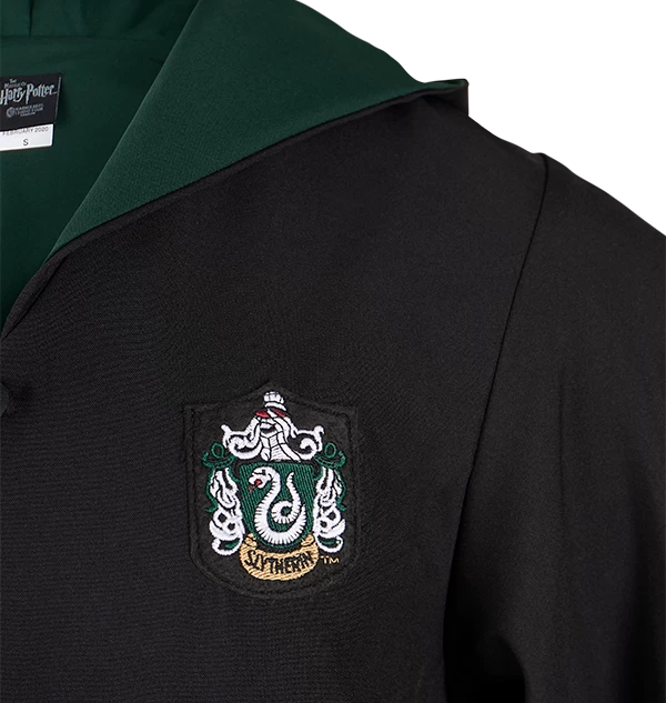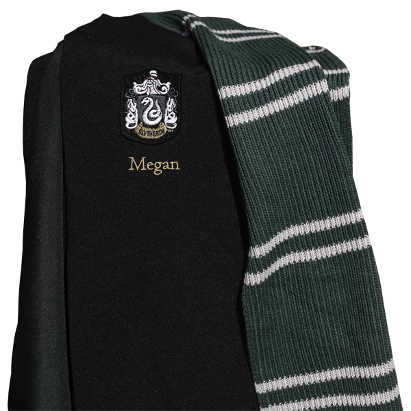 Celebrate your Hogwarts house pride with this replica Slytherin robe, as seen in the Harry Potter film series. The Personalised Slytherin Robe features contrasting green lining, pockets (there’s even a hidden pocket for your wand!), and embroidered Slytherin crest.