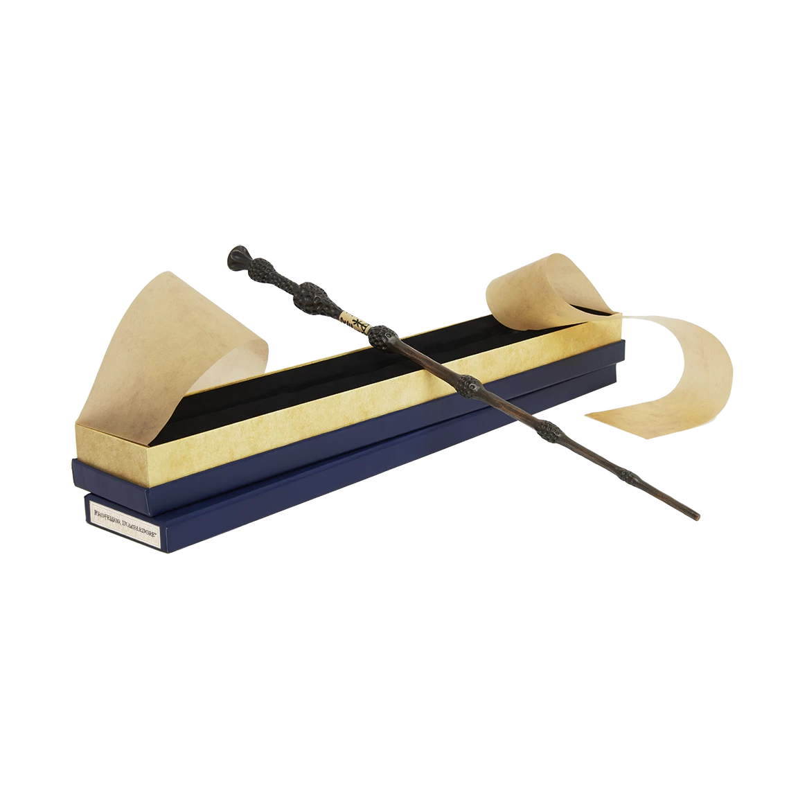 Measuring at approximately 40 cm (15 ¾ā) in length and made from resin, this wand is presented in a sleek, collectible wand box and features the character name with decorative paper overlay. This authentic replica has been sculpted with a unique design to represent the same wand Professor Albus Dumbledore used in the Harry Potter series. Please note, this is a collectible wand and not intended for use as a toy.