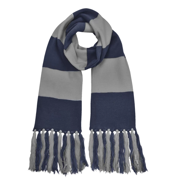 This scarf features the Ravenclaw house crest colours in a broad stripe pattern. It measures approximately 164cm long, and 21cm wide. The tassels add approximately 12cm extra to the end of the scarf.
