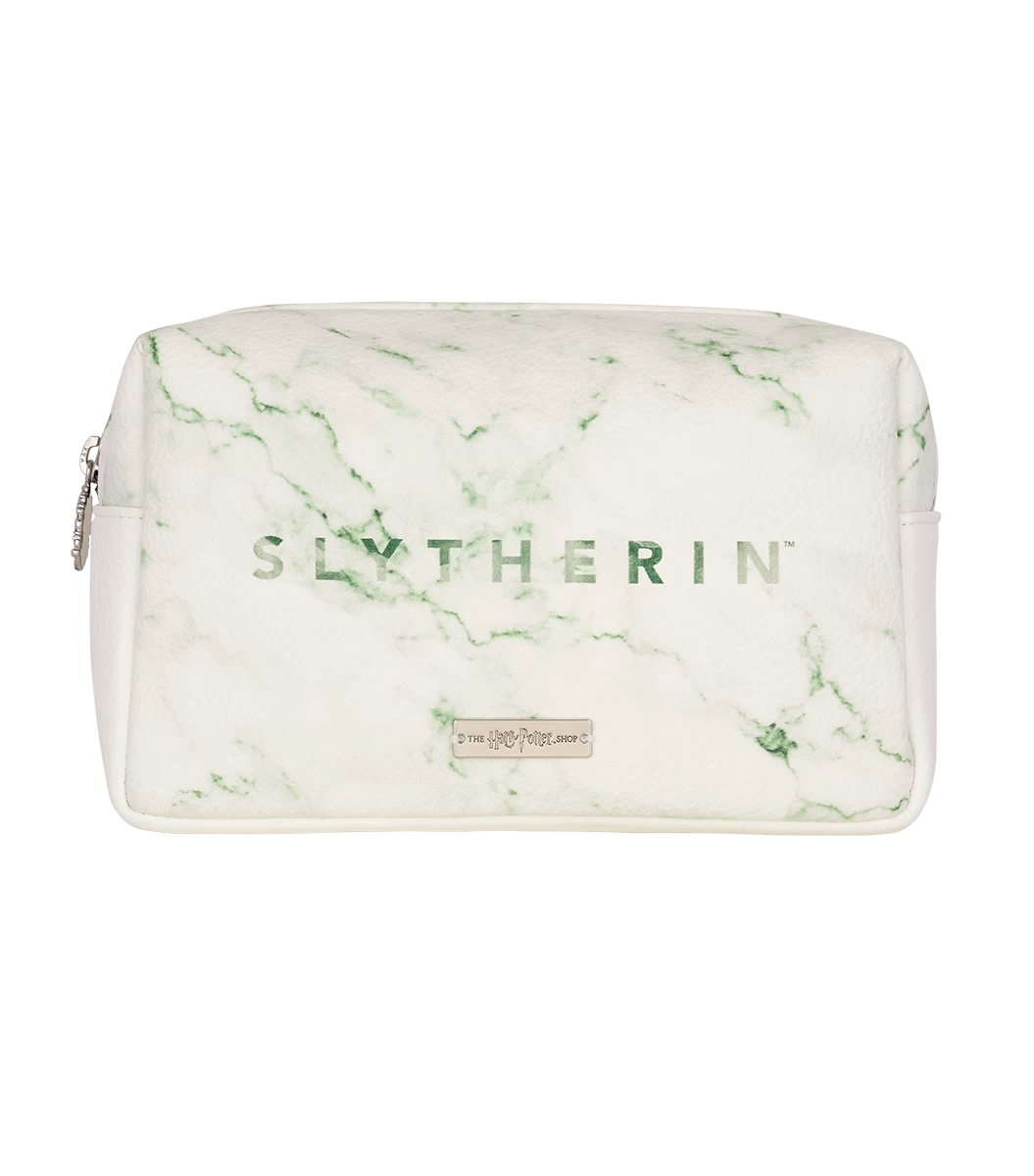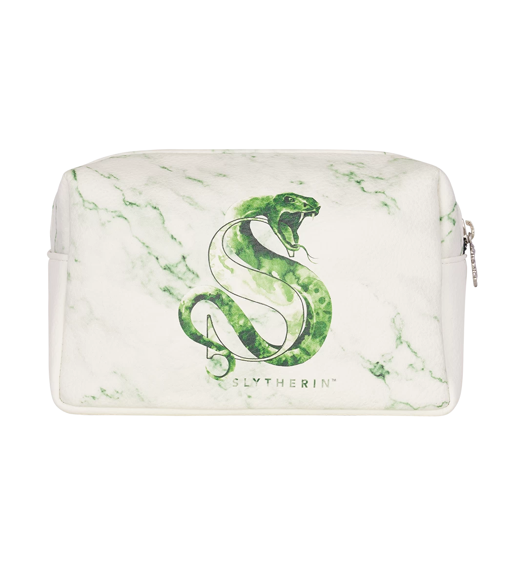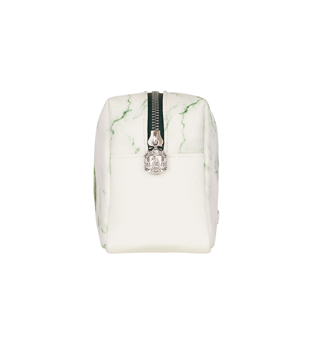 Inspired by Slytherin house pride is this unique Slytherin makeup bag. The bag features a white and emerald green marble effect in a PU leather material and is complete with a silver zip detailing the Slytherin house crest.