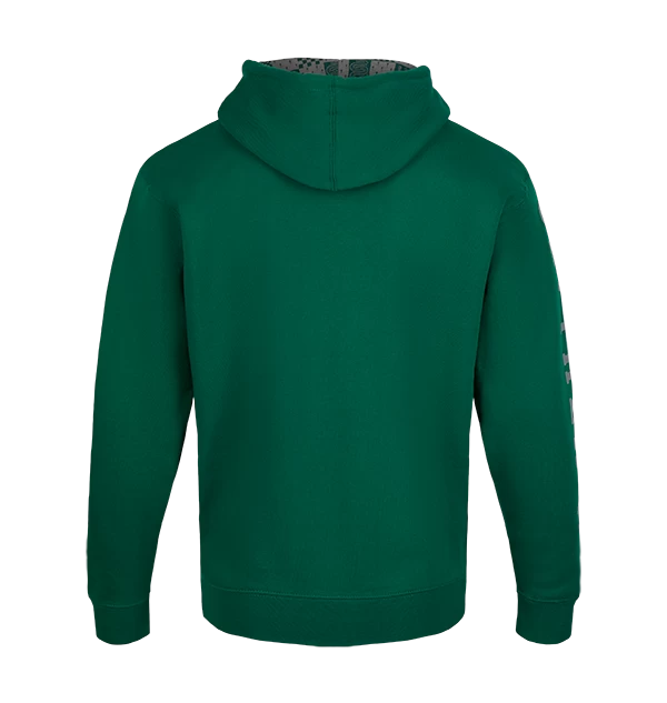Add a dash of magic to your wardrobe with this unisex Slytherin hooded sweatshirt. The emerald green hoodie features a grey serpent, the traditional symbol of the Slytherin house, and is complete with the serpent design printed in the lining of the hood.