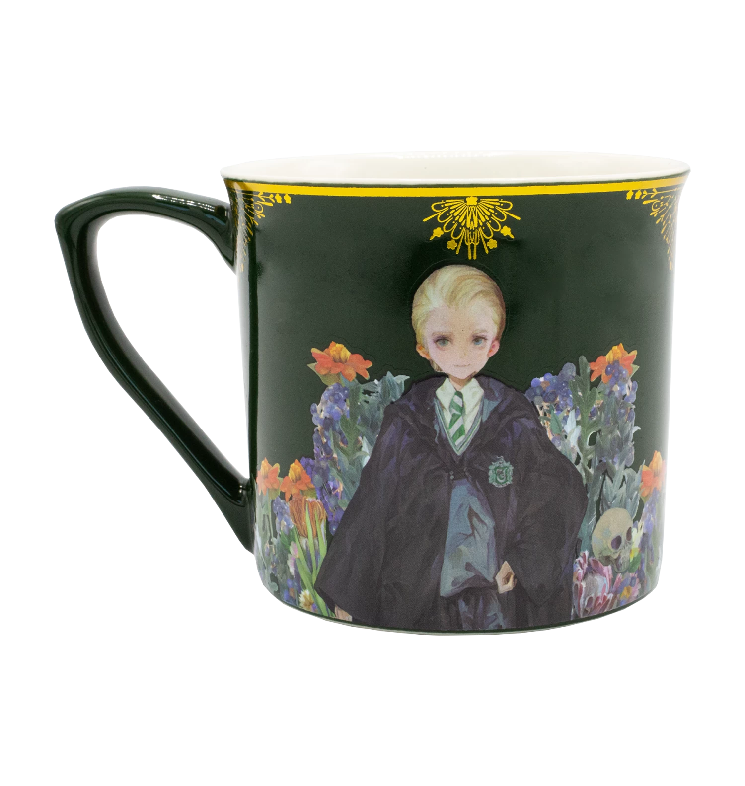 This exclusive Draco Malfoy mug is a tribute to Warner Bros. Studio Tour Tokyo – The Making of Harry Potter, featuring a stunning design of Draco in his Hogwarts school robe surrounded by an ominous but beautiful garden. Skulls and serpents can be seen woven throughout the wildflowers.